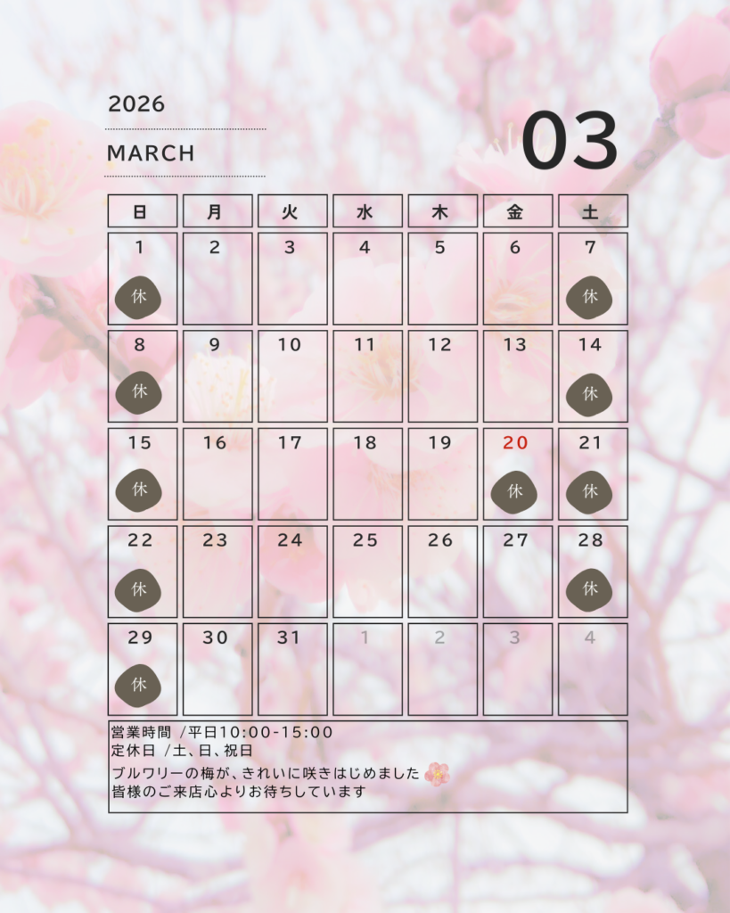 3月の営業カレンダーです。